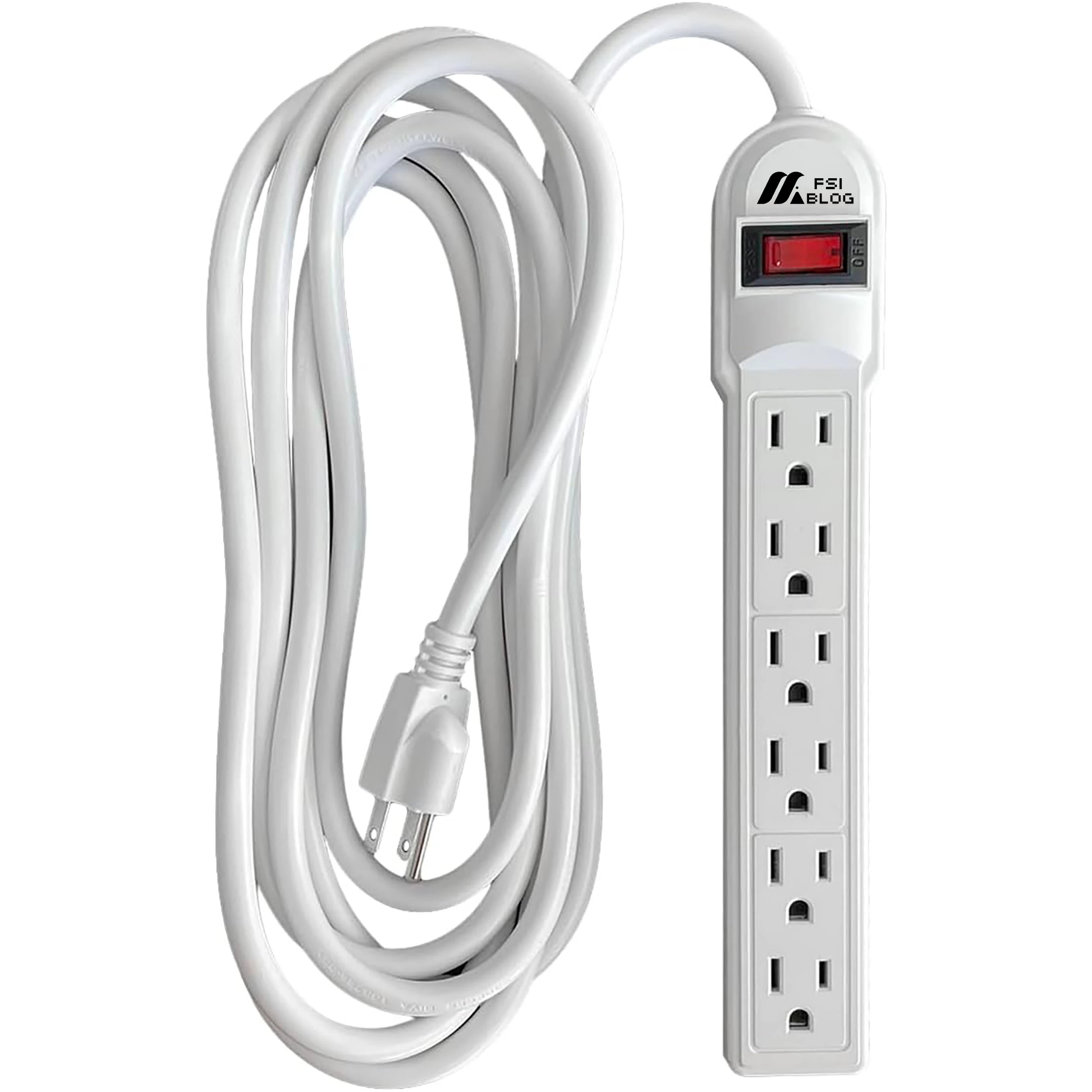 The Fsiblog Surge Protector Power Strip is designed to provide safe, reliable, and efficient power distribution for your home or office. With 6 AC outlets, an illuminated power switch and built in surge protection, this power strip protects your devices from power spikes, overloads and electrical faults. The long, heavy duty extension cord ensures flexibility and convenience, allowing you to reach distant wall outlets with ease.