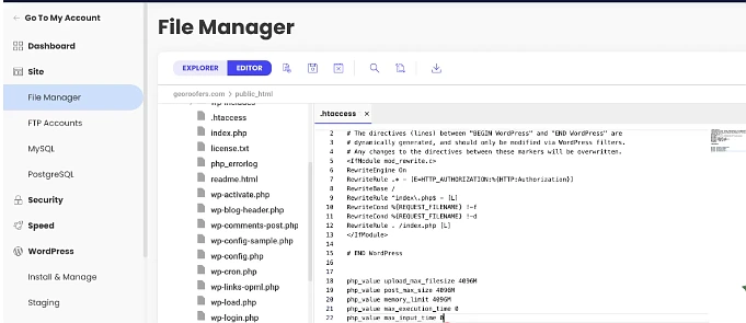 php.inifile: This is usually in your server’s root directory or accessible via your hosting control panel (cPanel/Plesk). - Find the directives: Look for
